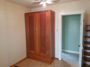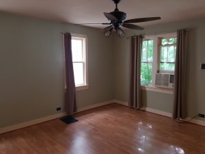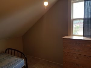 This house contains 4 bedrooms; one on the main floor, and 3 on the second floor. Also contains 2 bathrooms; one on each floor. The basement is unfinished, and used primarily for storage.
